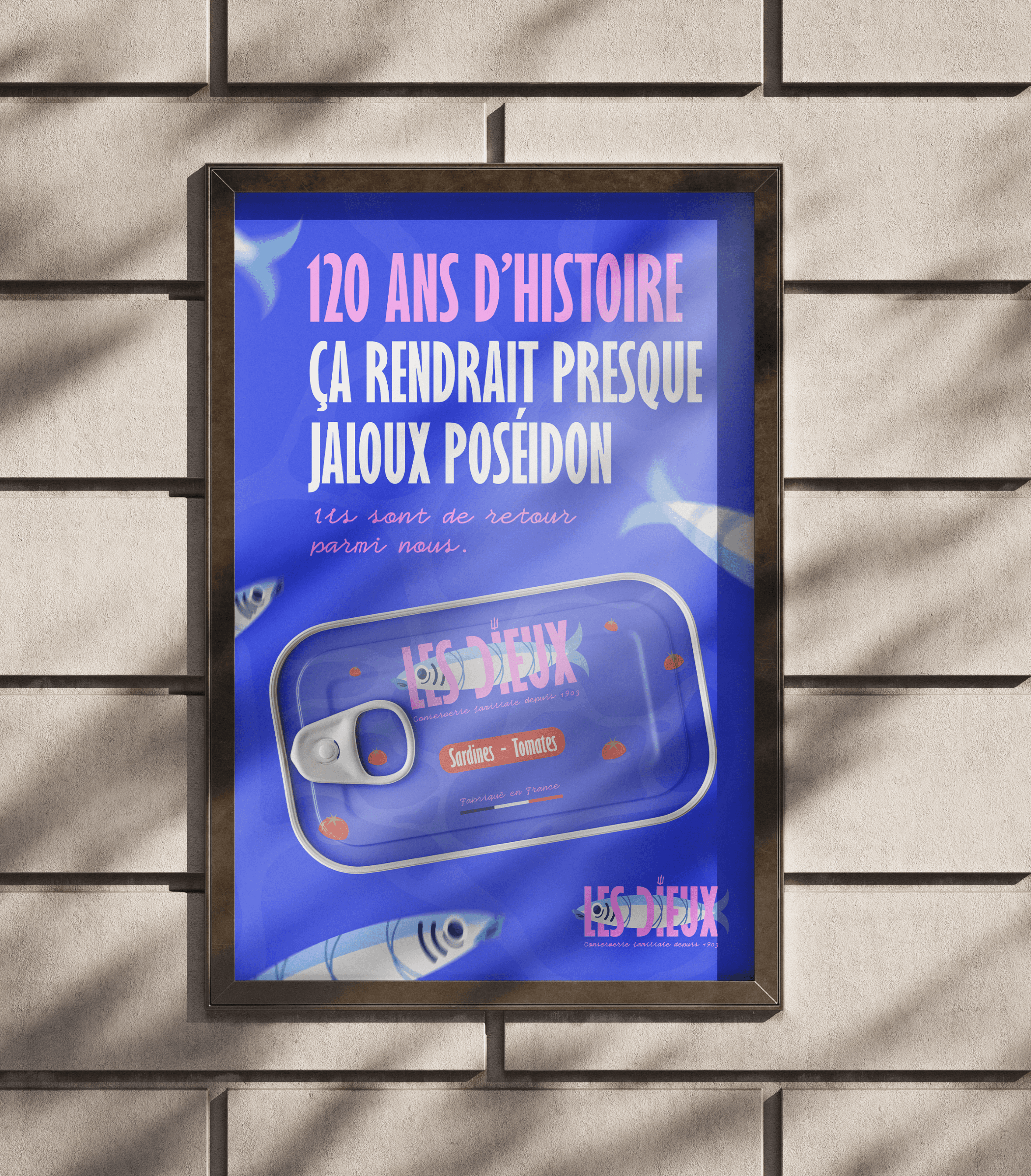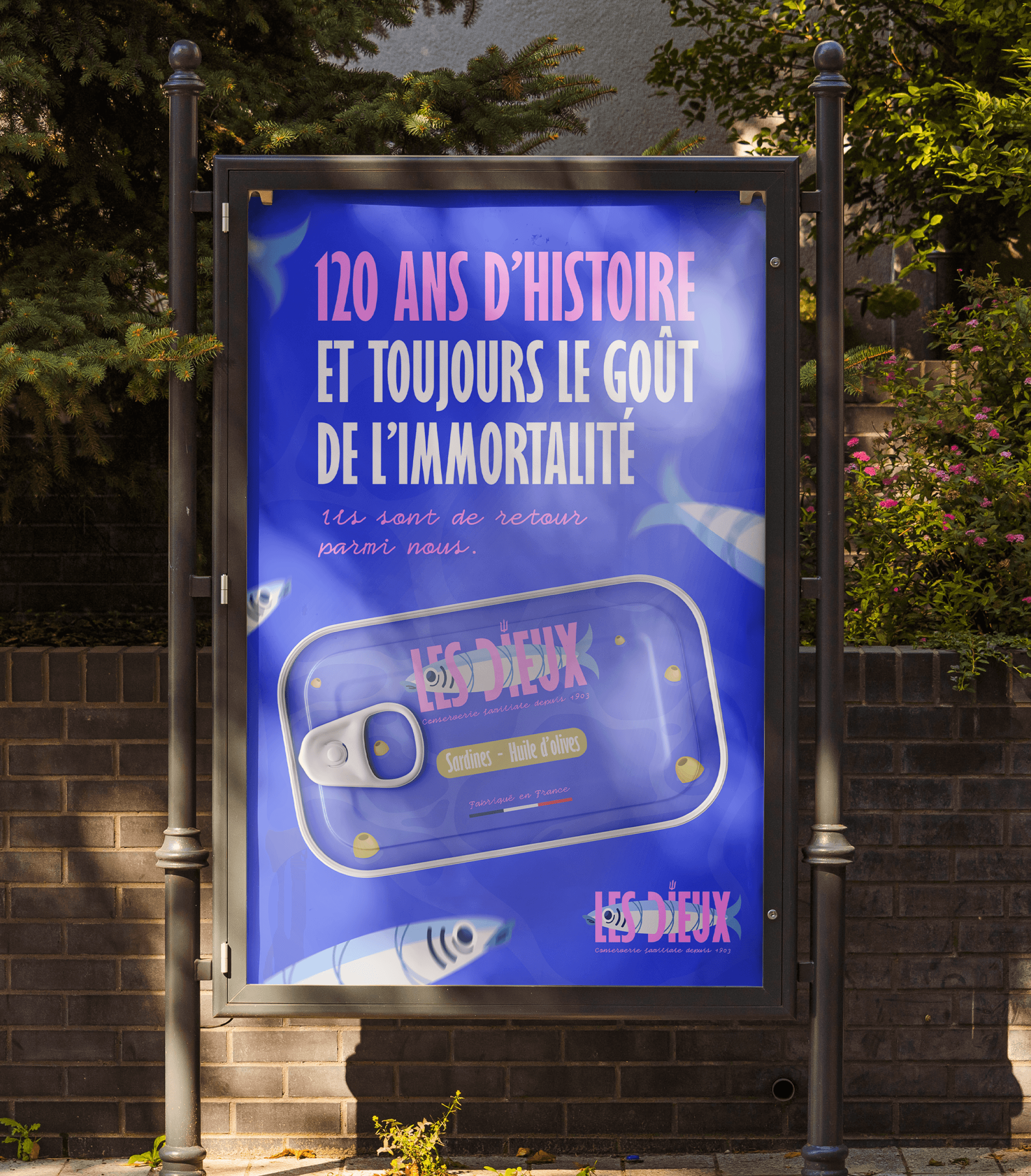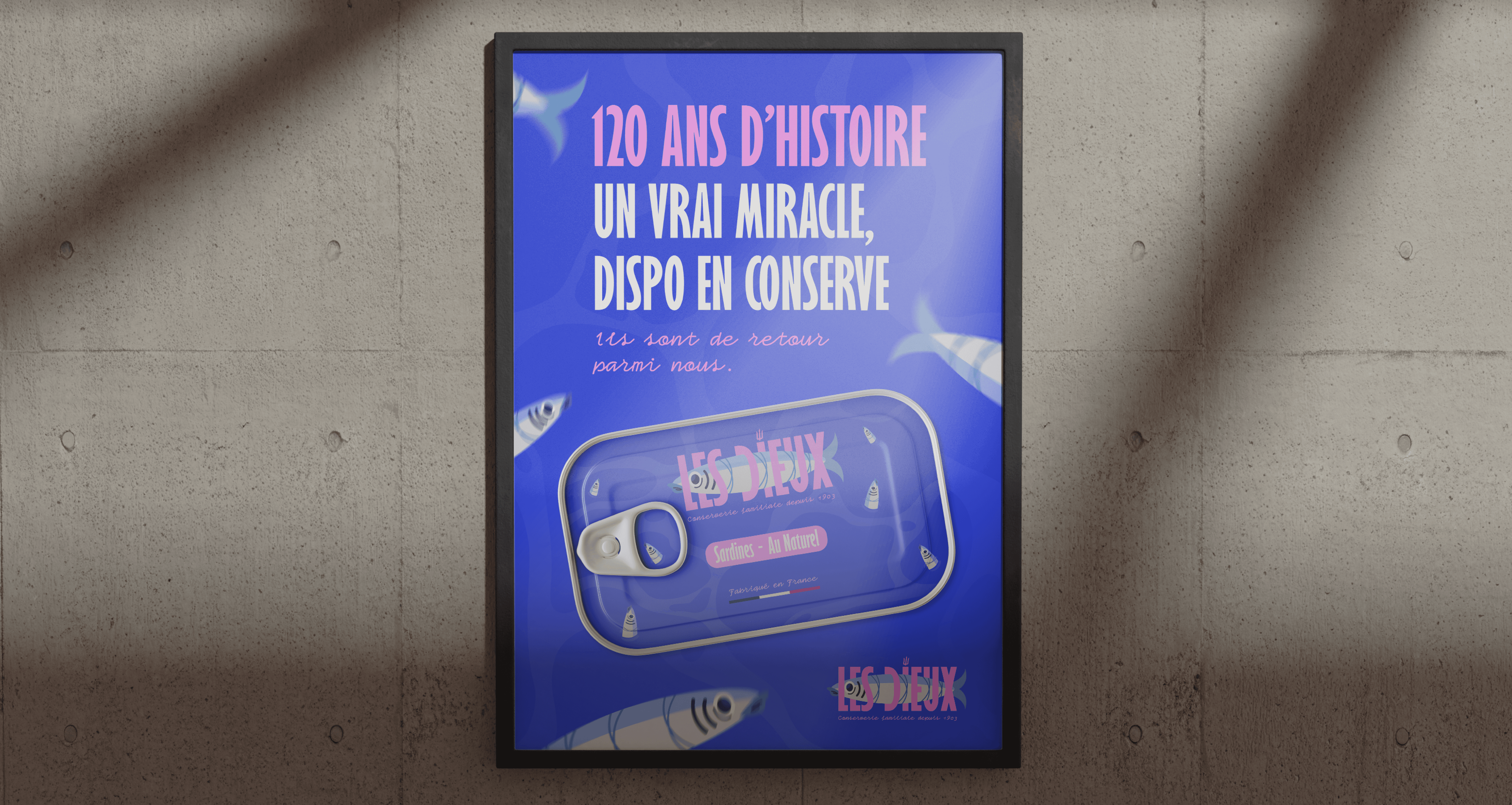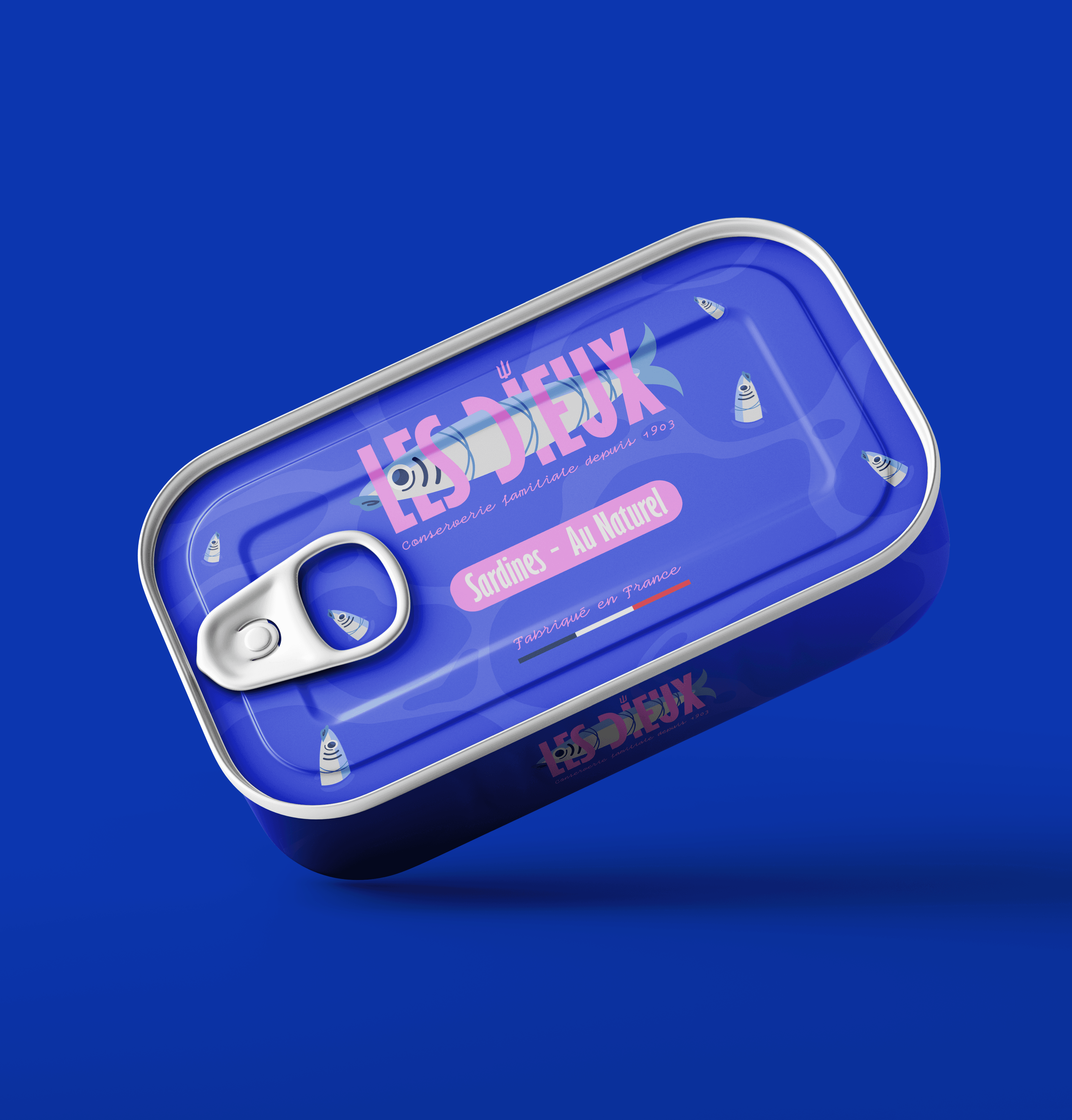 Design d'une une nouvelle identité graphique pour la marque Les Dieux faisant son retour sur le marché des conserves de sardines. [Projet d'école]